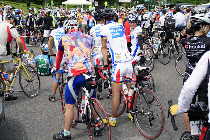 白地に青い水玉でとっても目立っていたこのチーム。岡山のスポーツバイクショップの方たちだそうです。